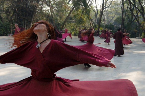 In maroon robes of various flattering styles (“the maroon color joins people’s energies,” according to Osho), the ashram’s mostly European and Japanese sannyasins (followers) wandered along well kept pathways in lush gardens, casually chatting or snacking on ice cream cones. Some could be seen weeding and gardening among the paths; others browsing in the glossy book store, or seated meditating to an echoing gong on the vast marble floor of an open-air meditation auditorium.