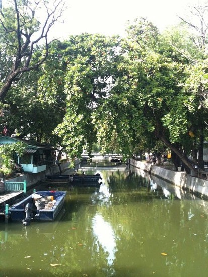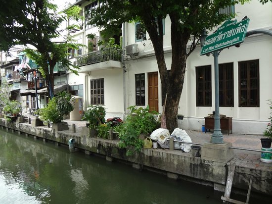 This lchharming old building is perched on a canal on the corner of Soi Phraya Si, a peaceful lane connecting two historic roads, Asadang Road and Fueng Nakorn Road. This area is known as a heritage neighborhood of old Bangkok.