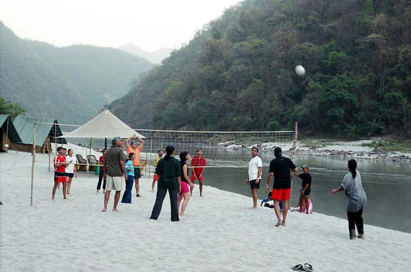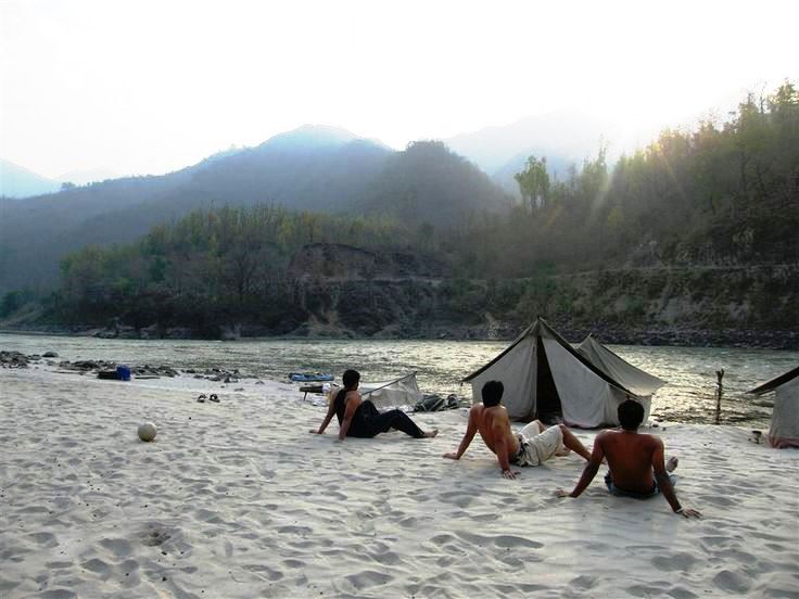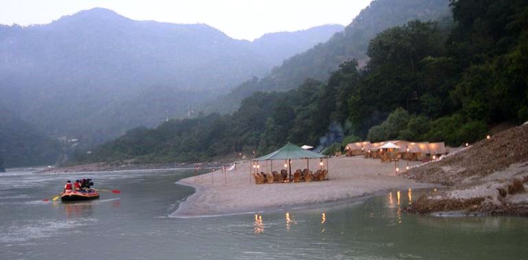 The 40 km stretch of Ganges around the pilgrimage town of Rishikesh is known as the white water rafting center of India. The river here is an especially scenic stretch of river gorge, interspersed with rapids ranging in force from class 2 to class 4. Tented camps line the beaches, the biggest and better ones being Snow Leopard, Himalayan River Runners and Aqua Terra.