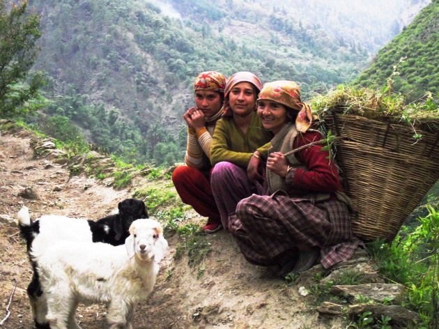 Pastel coloured hamlets, clusters of simple cubes resembling children’s dollhouses, perch precariously on the steep hillsides. The local villagers are visible as brilliant flashes of pink, yellow and red, their vividly coloured saris weaving through emerald green fields of wheat and beets, or among the pine covered slopes collecting leaves to feed their cattle. They go about their daily tasks just as their ancestors have done for centuries.