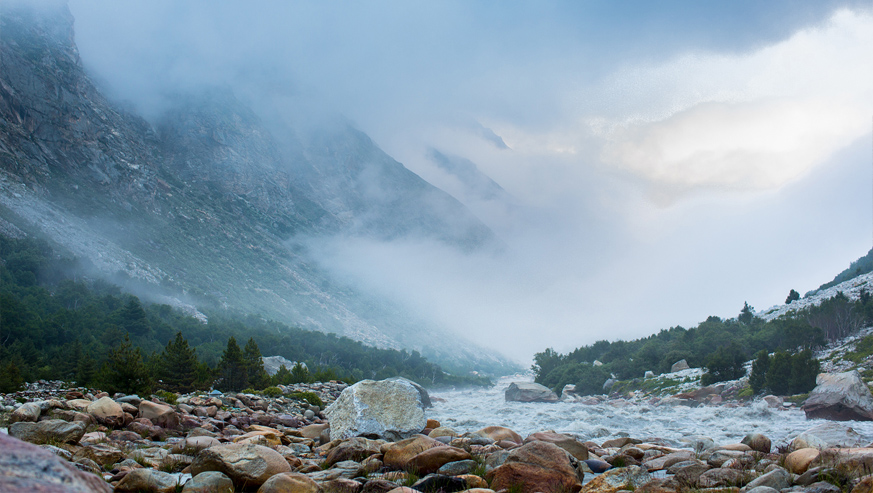 This hill region is where the holy Ganges River emerges from its source at Gangotri, not far from the Tibetan border, before gushing southward on its long and ever expanding journey to the sea.
