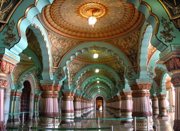 The interiors are filled with royal portraits of the ruling Wodeyar kings, Italian marble floors, Belgian crystal chandeliers, cut glass lamps, ornate furniture, mosaics and Persian carpets, and all the magnificence you would expect to find in a royal abode.