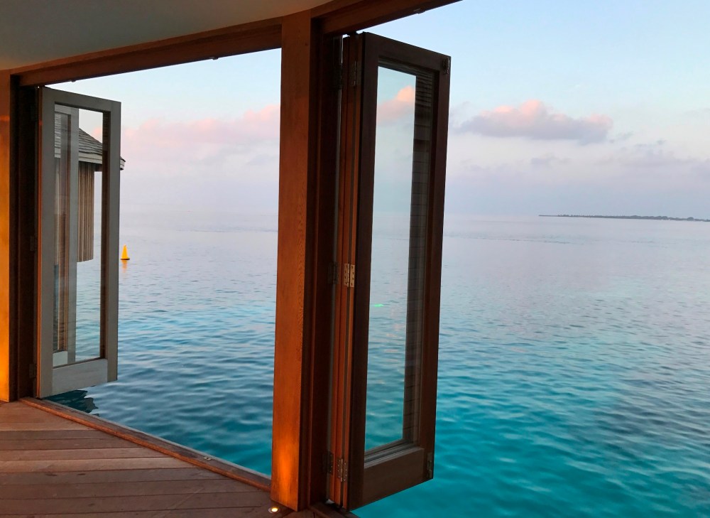Well, recently the chance came up to visit the new luxury resort Hurawalhi Maldives and it was the photo of the resort’s incredible 5.8 Undersea Restaurant that made me snap to attention. The world’s largest all-glass underwater restaurant, the description said. It looked spectacular, cool, magical! And I’m pretty sure the risk of sunburn underwater is nil. I had to see this place! Hurawalhi here I come!