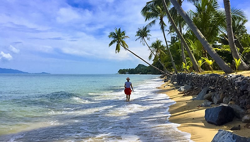 Life in Koh Samui offers a daily lifestyle surrounded by nature, sunshine, long beach walks, fantastic Thai food at local restaurants, and a vibrant social scene throughout the island.