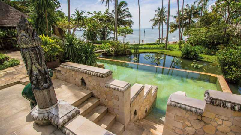 Set on a lush hillside on a secluded beach, its creative and delicious organic health cuisine, open-air wellness center, and open-air restaurants provide a connection to the lush natural surroundings that are part of the mind-body renewal process. There’s a meditation cave once used by monks on retreat, and two beautiful swimming pools – a tranquil beachside pool and a huge lap pool next to the gym on a hilltop overlooking a panoramic sea view.