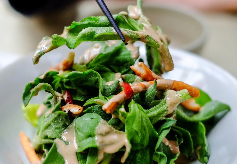 One local vegetable we’d been recommended to try was the “ice plant”, native only to Sichuan, and so called due to miniscule white follicles that look like frost, but is actually part of the plant. Mi Xun’s Ice Plant with Sesame Sauce was an absolutely delicious fresh salad, both for the flavourful dressing and the plant’s incredible texture which was springy, succulent, bouncy and crisp all at the same time. The texture and fragrant green flavor were incredibly delightful.