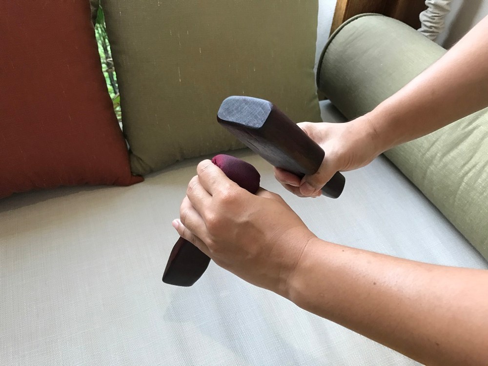 Tok Sen massage is an ancient northern Thai therapy using a wooden mallet and peg to tap along the body’s energy lines to release blocked energy. The knocking was an unusual experience and the cracking sound of hammering was slightly nerve wracking. The results were relaxing, as I fell fast asleep during the oil massage afterwards. The treatment ended with a refreshment in the spa café pavilion in the bamboo garden. I chatted with the café attendants and told them the spa cookies were as delicious as the ones at breakfast.