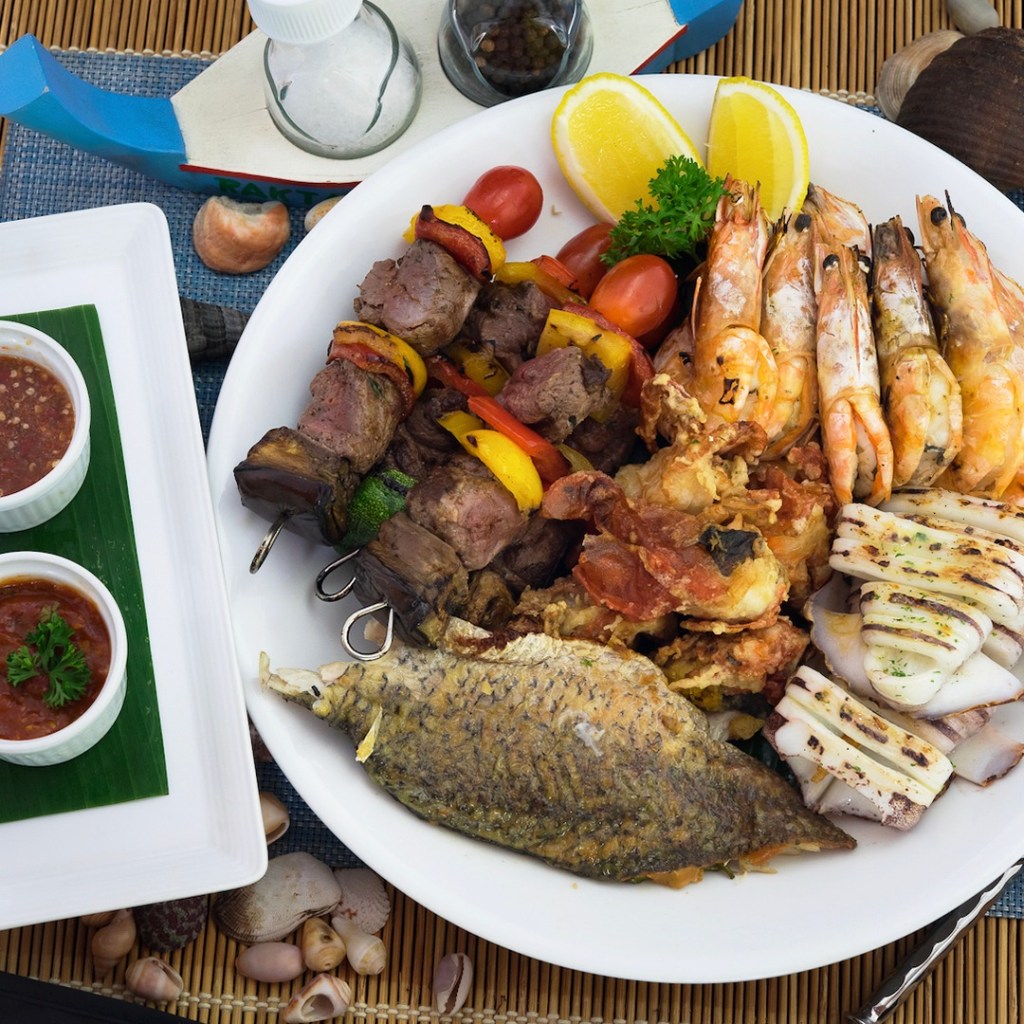We were more than ready for sunset drinks on bean bags and a filling surf and turf dinner in the sand at the resort’s Rak Talay beach bar and restaurant.